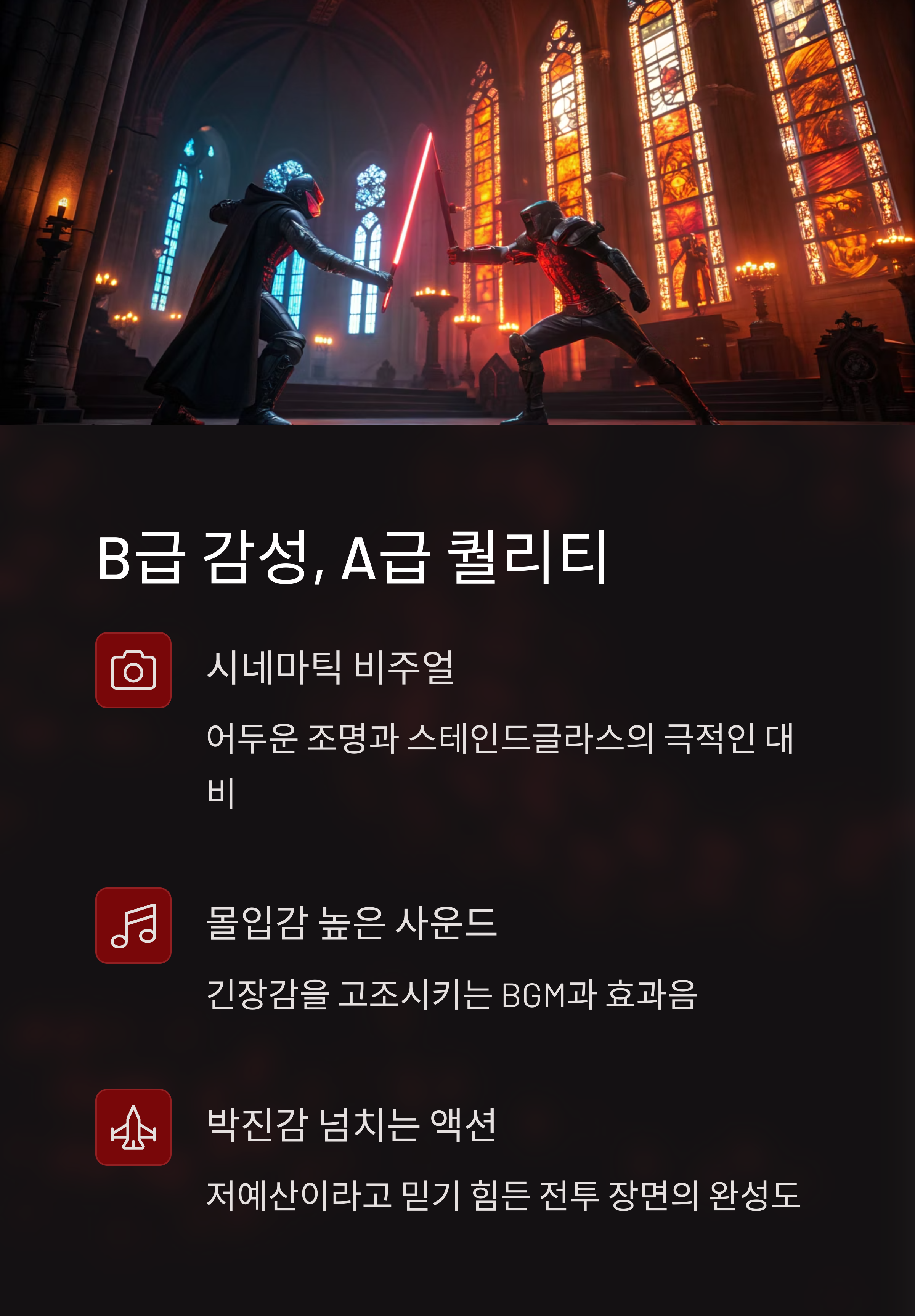 저예산 느낌일 거라 생각하기 쉽지만, 실제론 꽤 완성도 높은 시네마틱 구성을 보여줍니다.