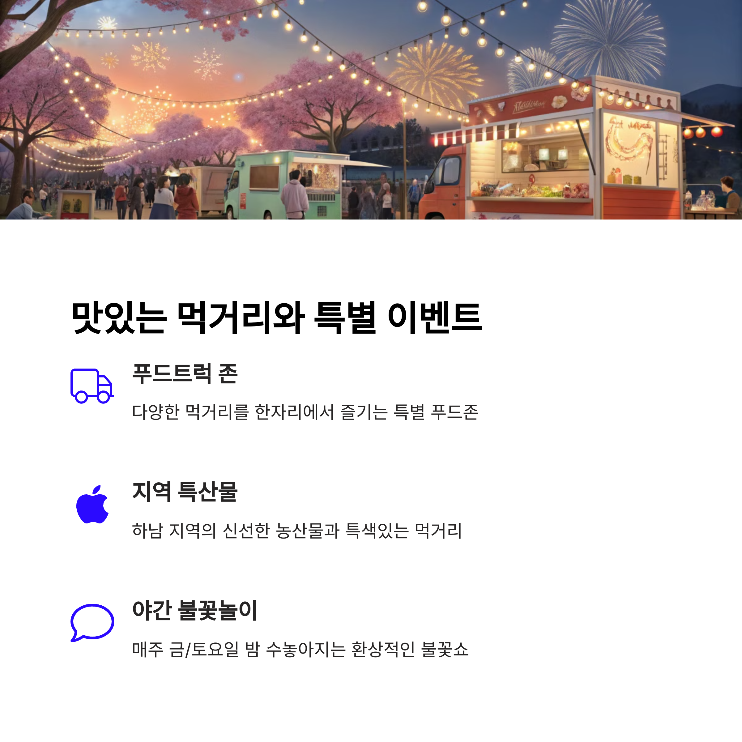| 라이브 공연, 체험부스, 불꽃놀이, 푸드트럭 | 하남 미사역, 셔틀버스, 임시주차장 운영 | 평일 방문 추천, 야간 조명길은 필수 코스 |
