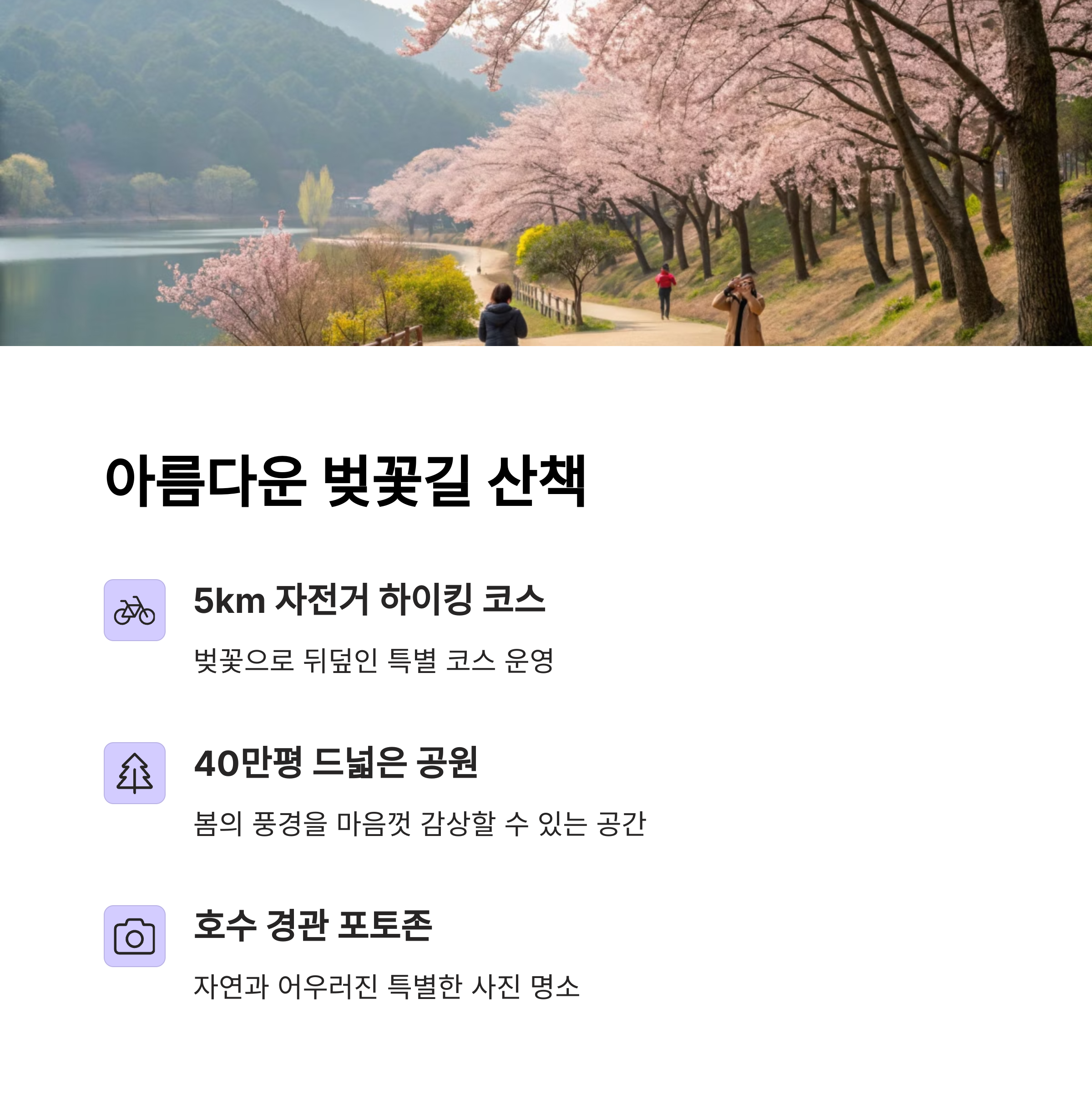 | 시민참여형 프로그램 확대 예정 | 네이버지도, 티맵 등 활용한 실시간 안내 | 돗자리, 보조 배터리, 간식 챙기기 추천 |