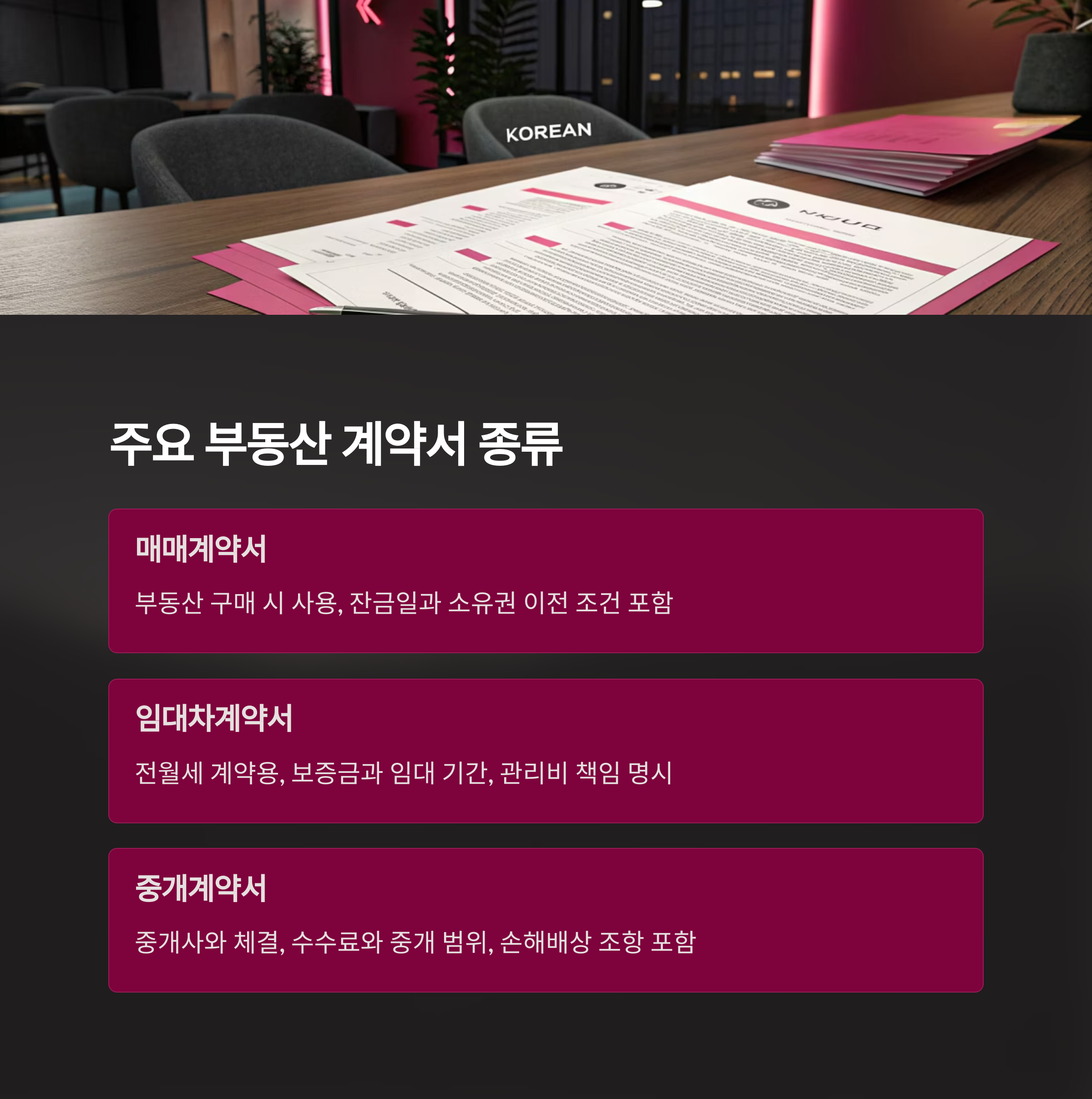 부동산 거래 시 활용되는 계약서 샘플은 거래 목적에 따라 구분됩니다.