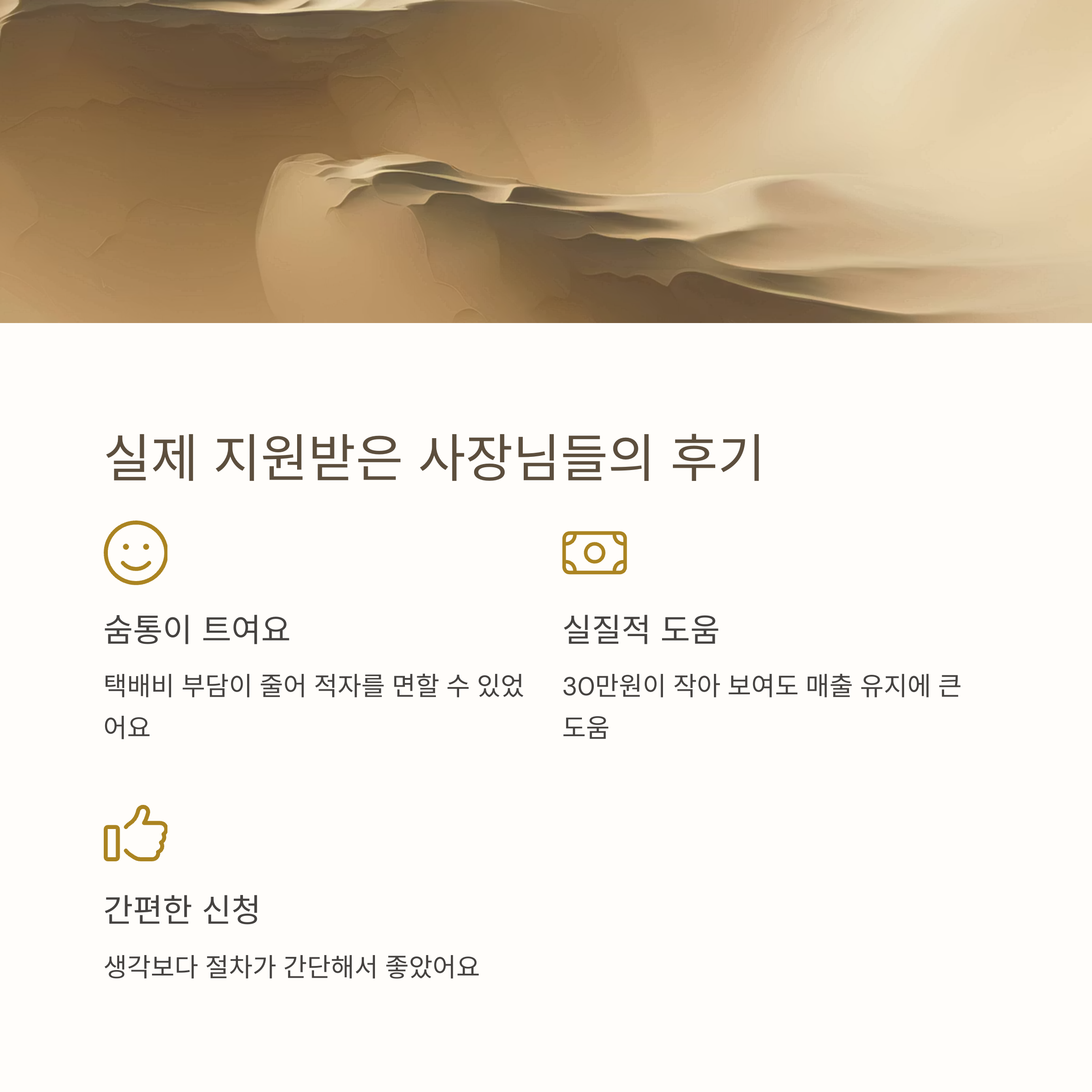받아본 사장님들 얘기 들어보면 "30만 원이 뭐 큰돈이냐" 하실 수도 있지만 막상 받으면 진짜 숨통 트인다 하더라구요. 그 돈으로 택배비 해결되니까 적자 안 보이고, 매출 유지만 해도 땡큐라는 반응 많았어요.