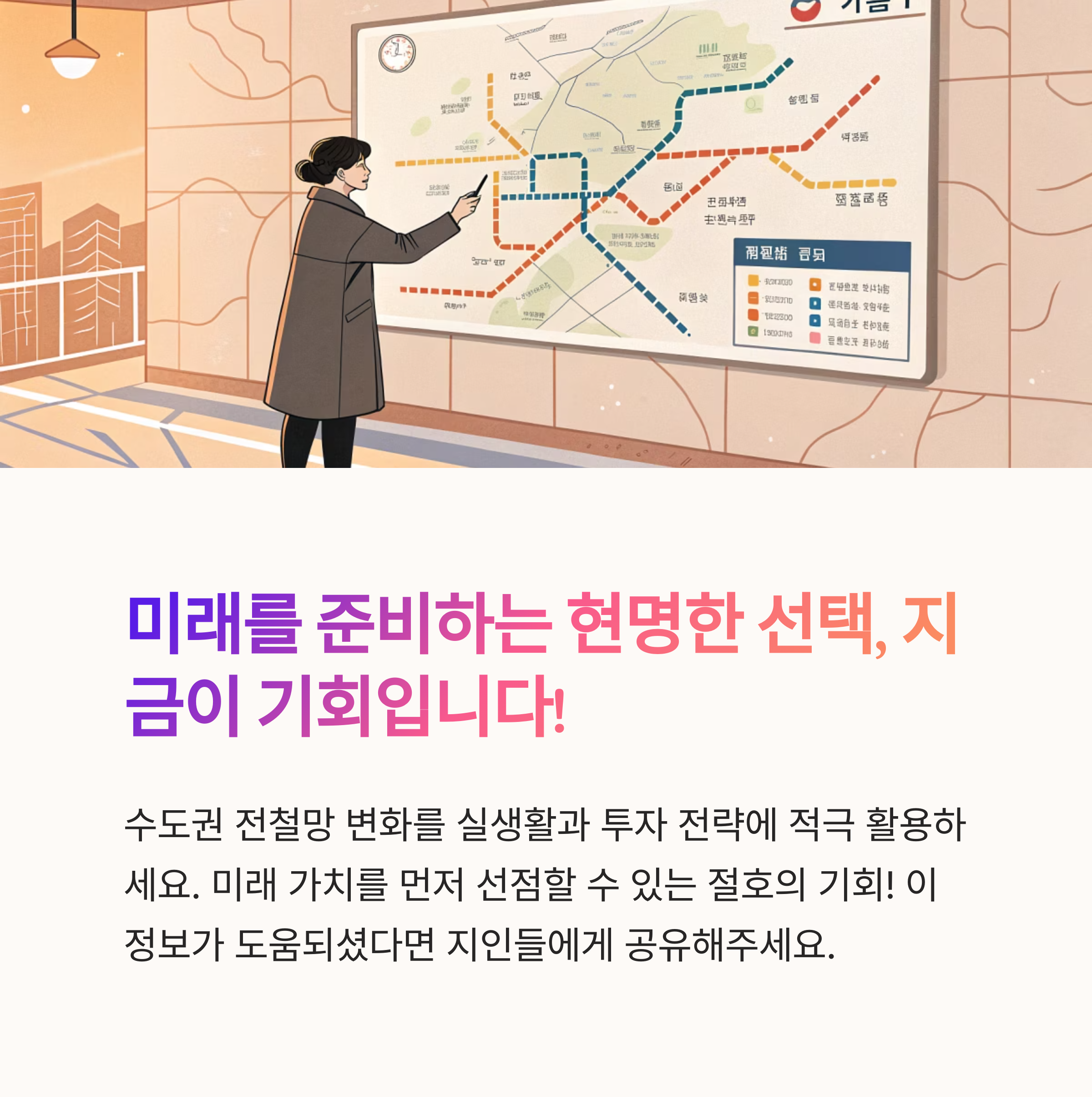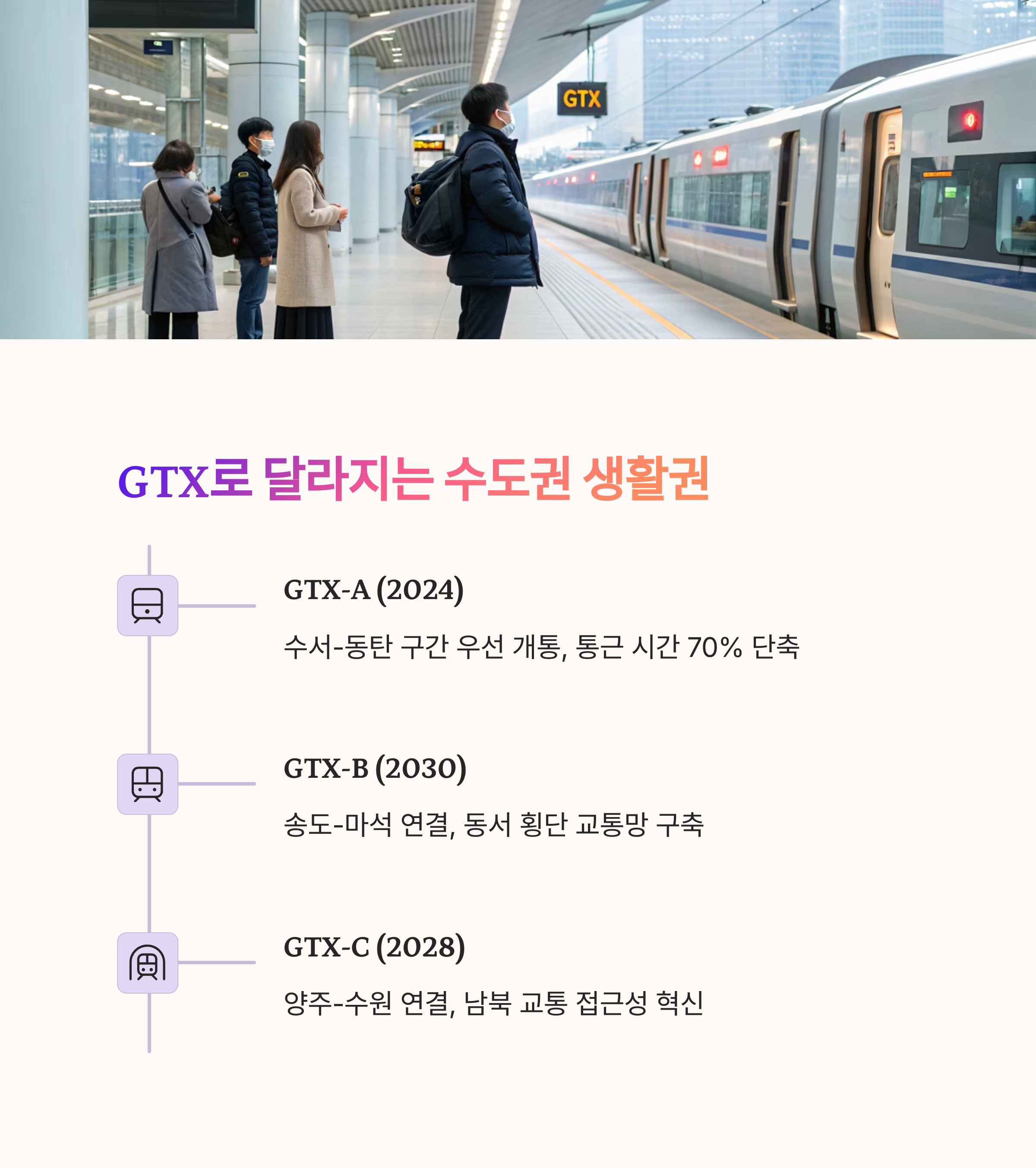 | GTX, 신분당선, 위례선 등 주요 노선 소개 | 각 구간별 개통 시기 및 진행 상황 안내 | 미래 투자 분석 및 실거주자 혜택 정리 |