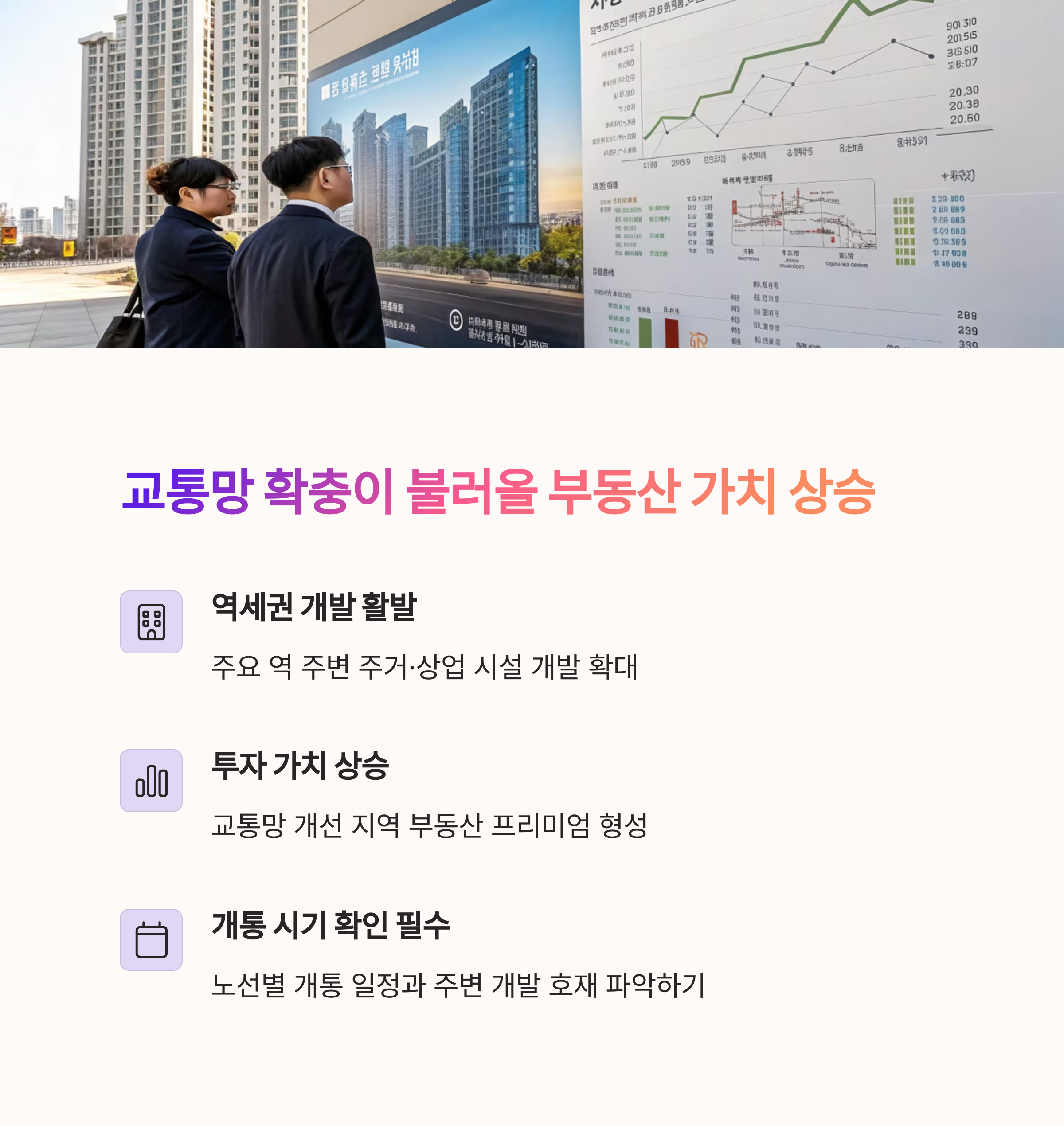 | 교통 호재 영향 | 부동산 시장과 출퇴근 여건에 미치는 실질 영향 |