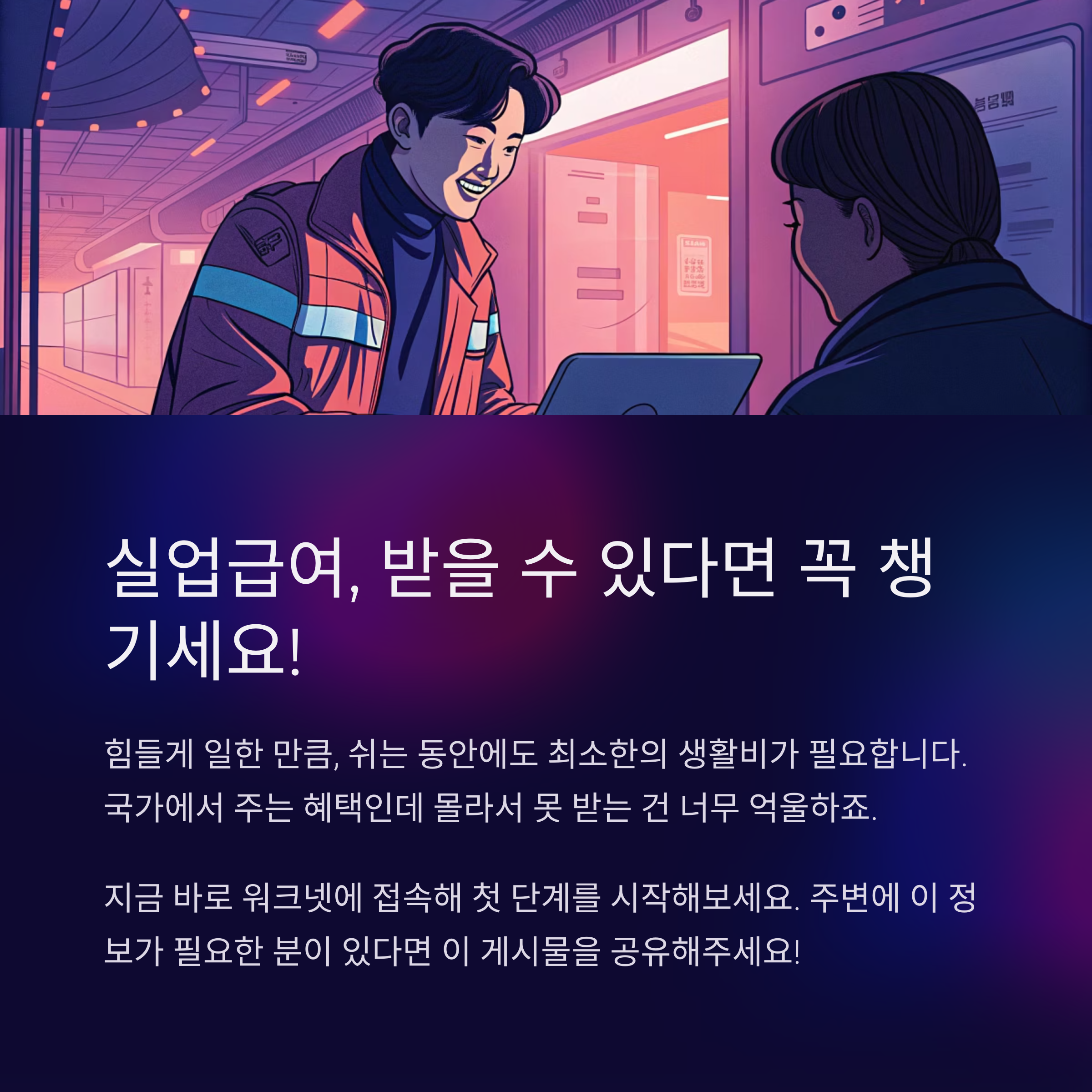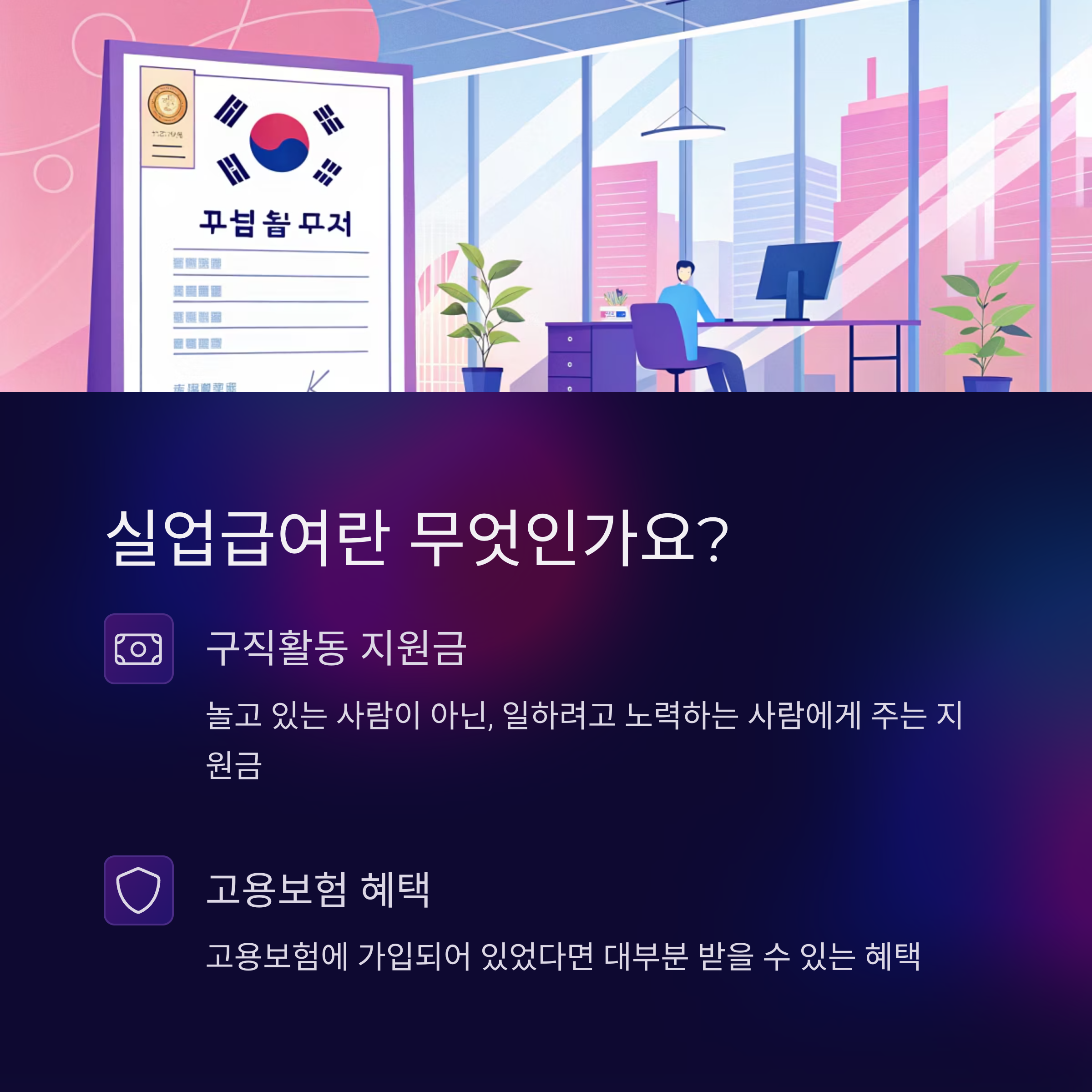 1. 실업급여란, 일 안 하고도 돈 받는다는 뜻은 아닙니다