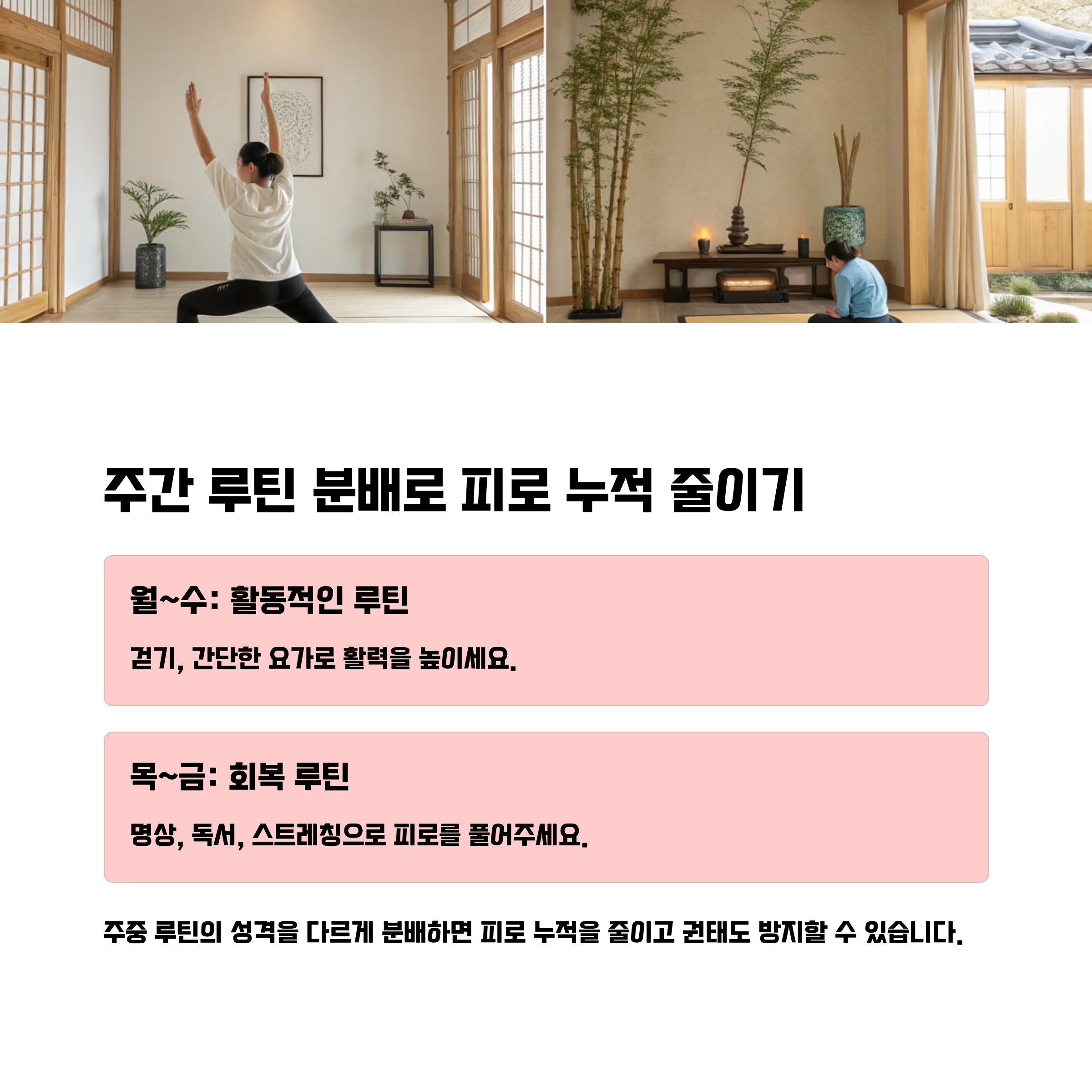 주중 루틴의 성격을 다르게 분배하면 피로 누적을 줄일 수 있습니다.