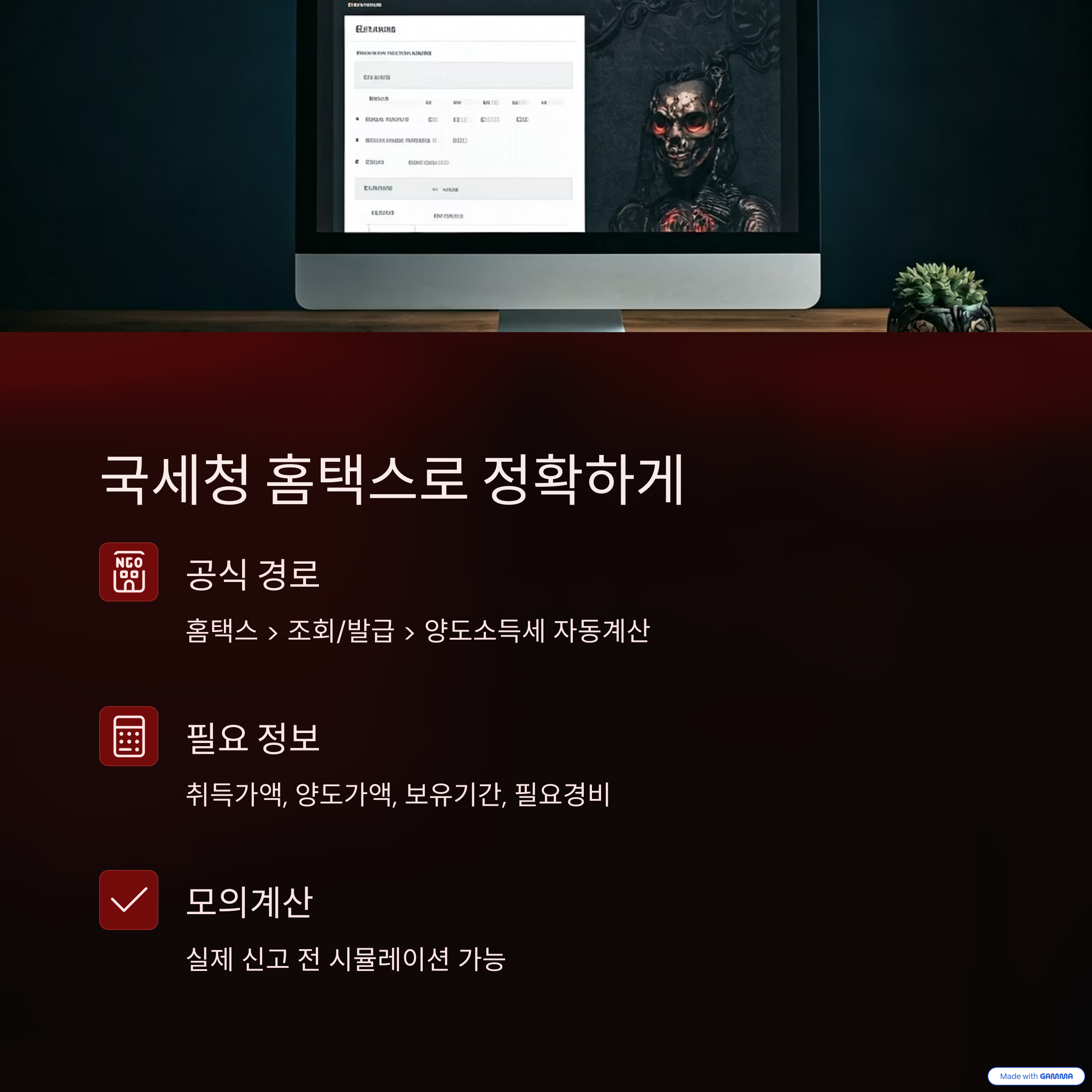 결론: 참고용으로는 가능하지만, 확정된 양도세액은 홈택스 기준으로 확인하는 것이 안전합니다.