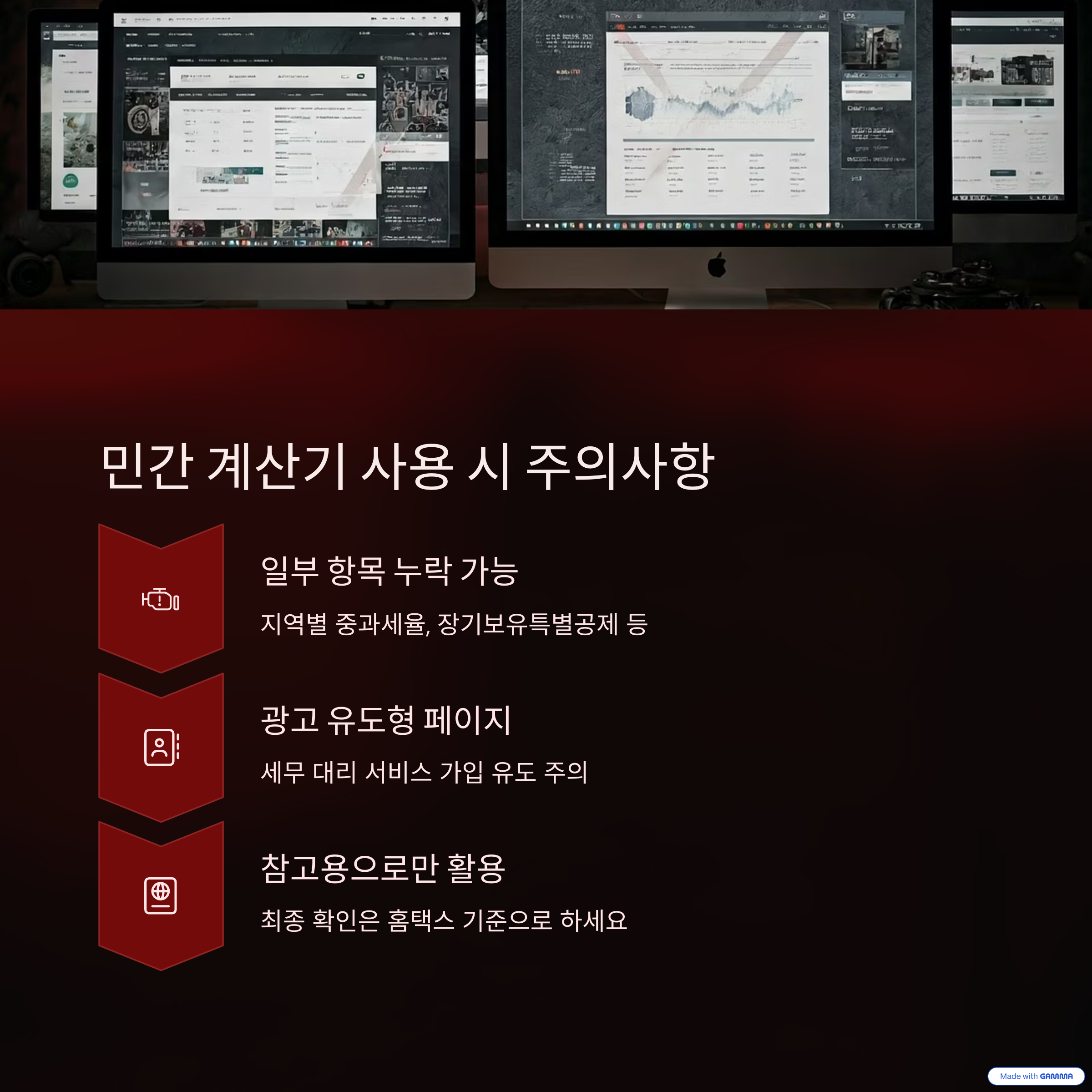 - 지역별 중과세율, 장기보유특별공제 등 일부 항목 누락 가능