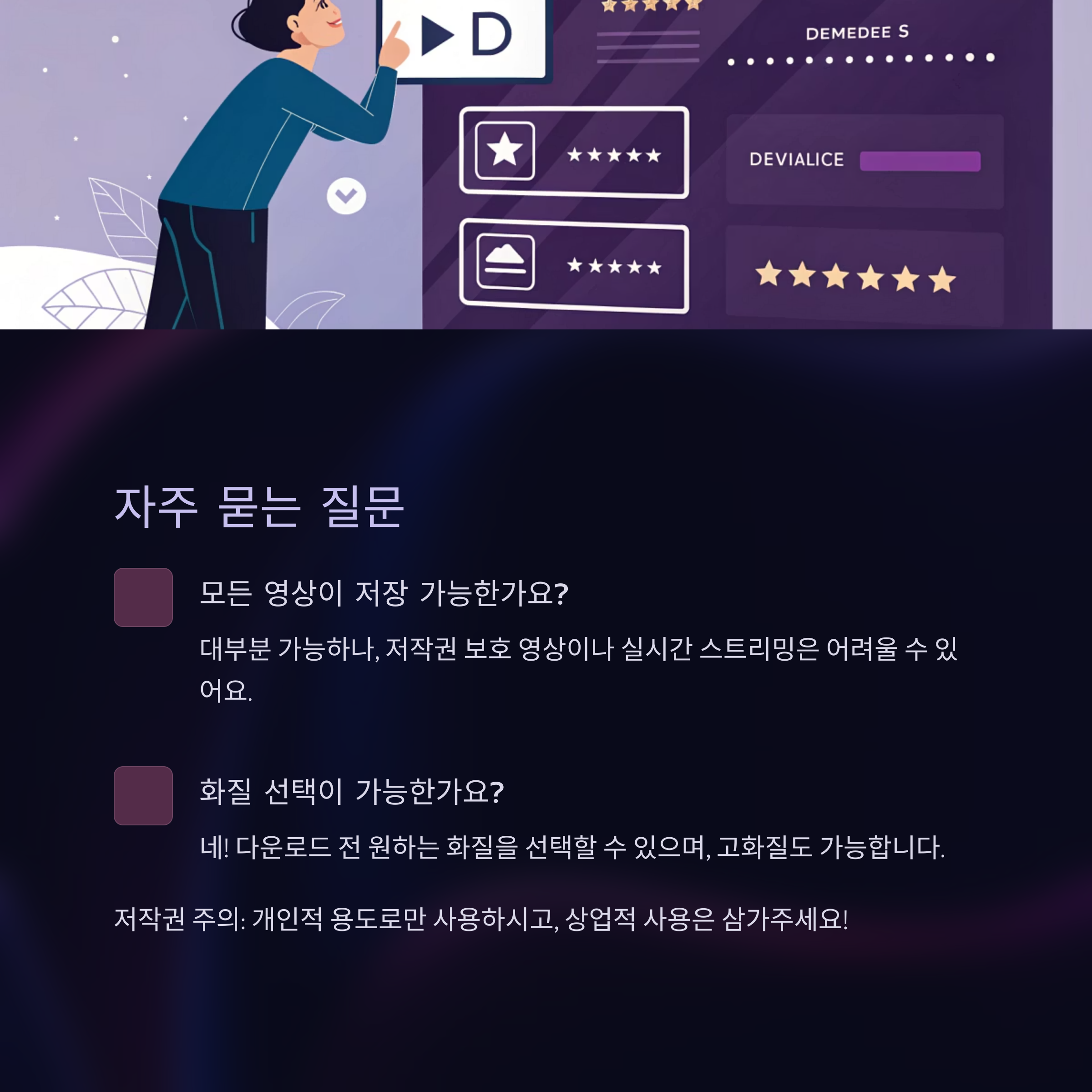 A. 대부분의 영상은 저장 가능하지만, 저작권 보호가 강한 영상이나 실시간 스트리밍은 저장이 어려울 수 있어요.