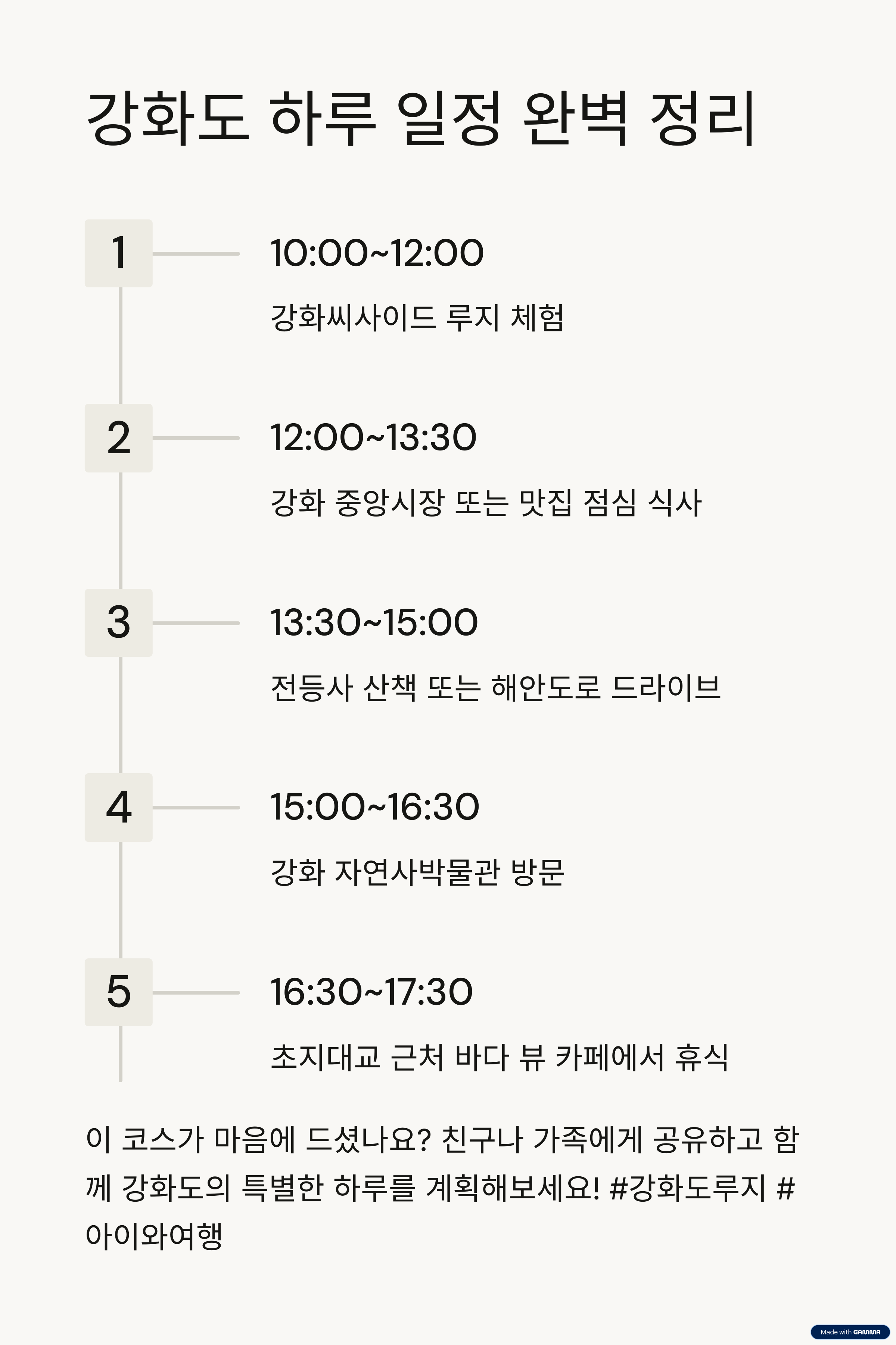 점심 이후에는 강화자연사박물관 또는 강화평화전망대 등을 추천드립니다.