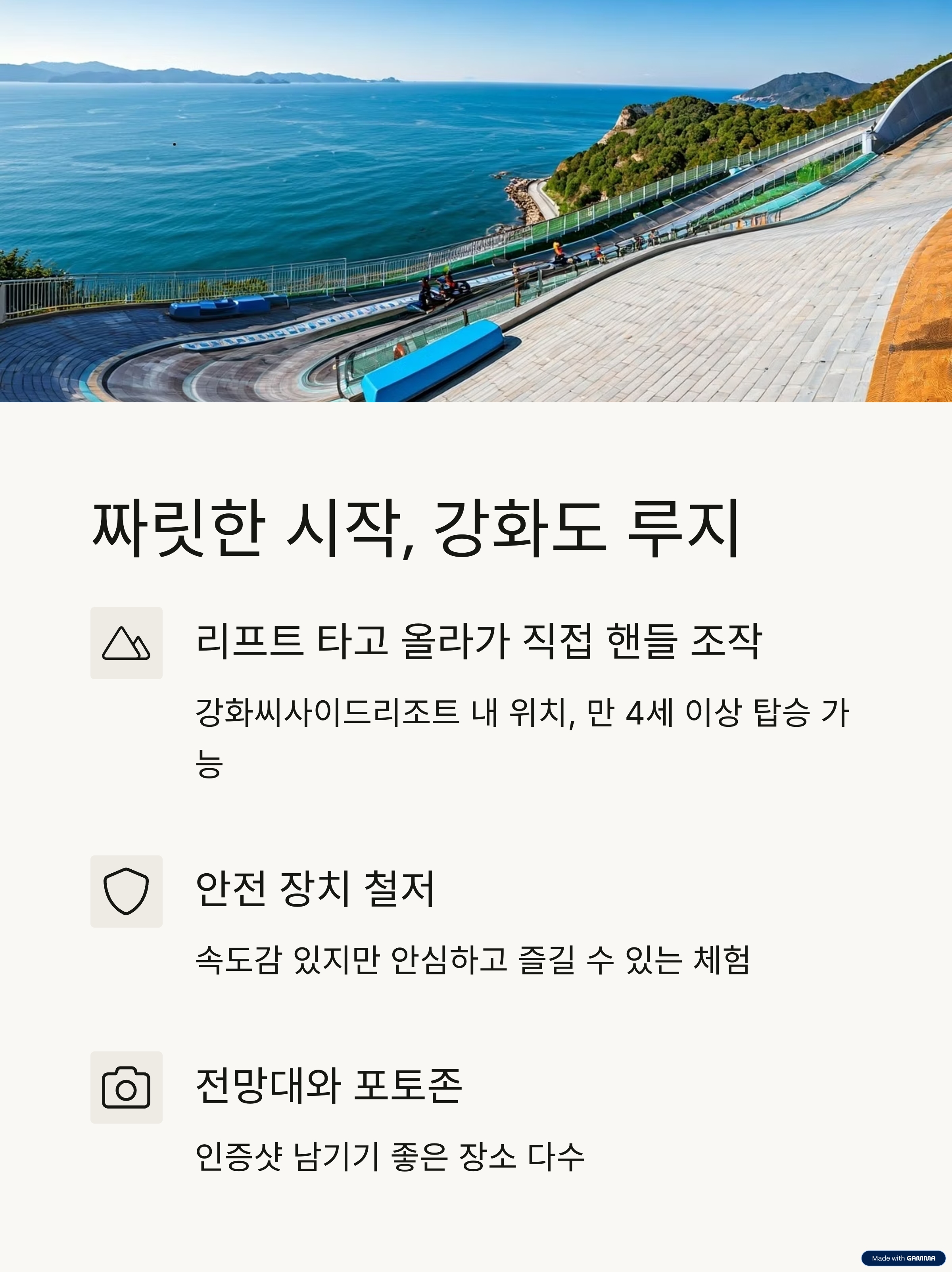강화도 루지를 중심으로 구성된 인천 아이 동반 데이트코스는