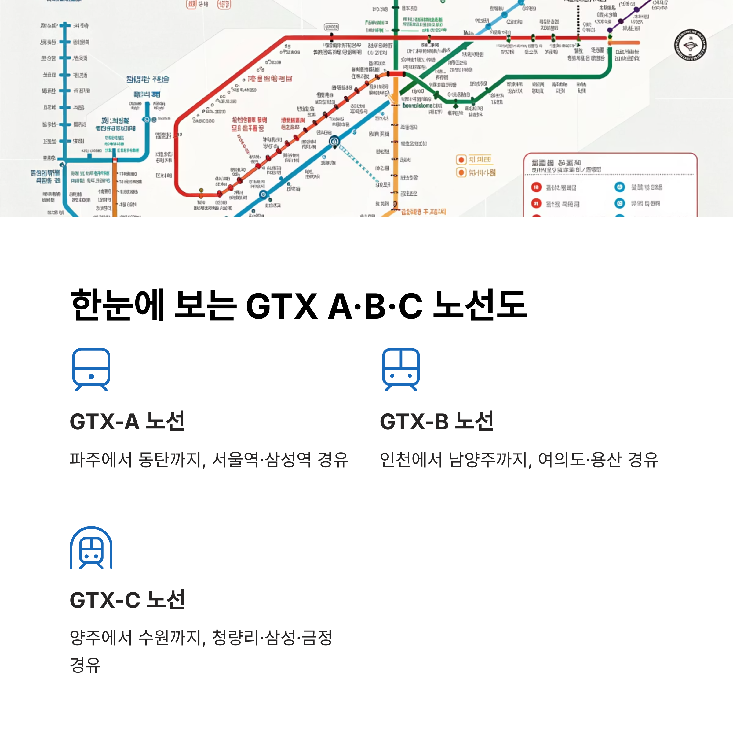 GTX가 우리 일상에 들어오면서 '서울 중심'이던 생활권이 완전히 바뀌고 있어요. 이제는 파주도, 동탄도, 수원도 훨씬 가깝게 느껴지죠. 저도 처음엔 반신반의했지만, 직접 타보고 나선 확실히 느꼈어요—이건 진짜 혁명이에요. 여러분도 한 번쯤은 GTX로 일상을 벗어난 여행, 혹은 특별한 하루를 기획해보시는 건 어떨까요? 혹시 여러분만의 숨겨진 GTX 명소가 있다면 댓글로 알려주세요! 같이 공유하면 더 즐거운 여행이 될 거예요.