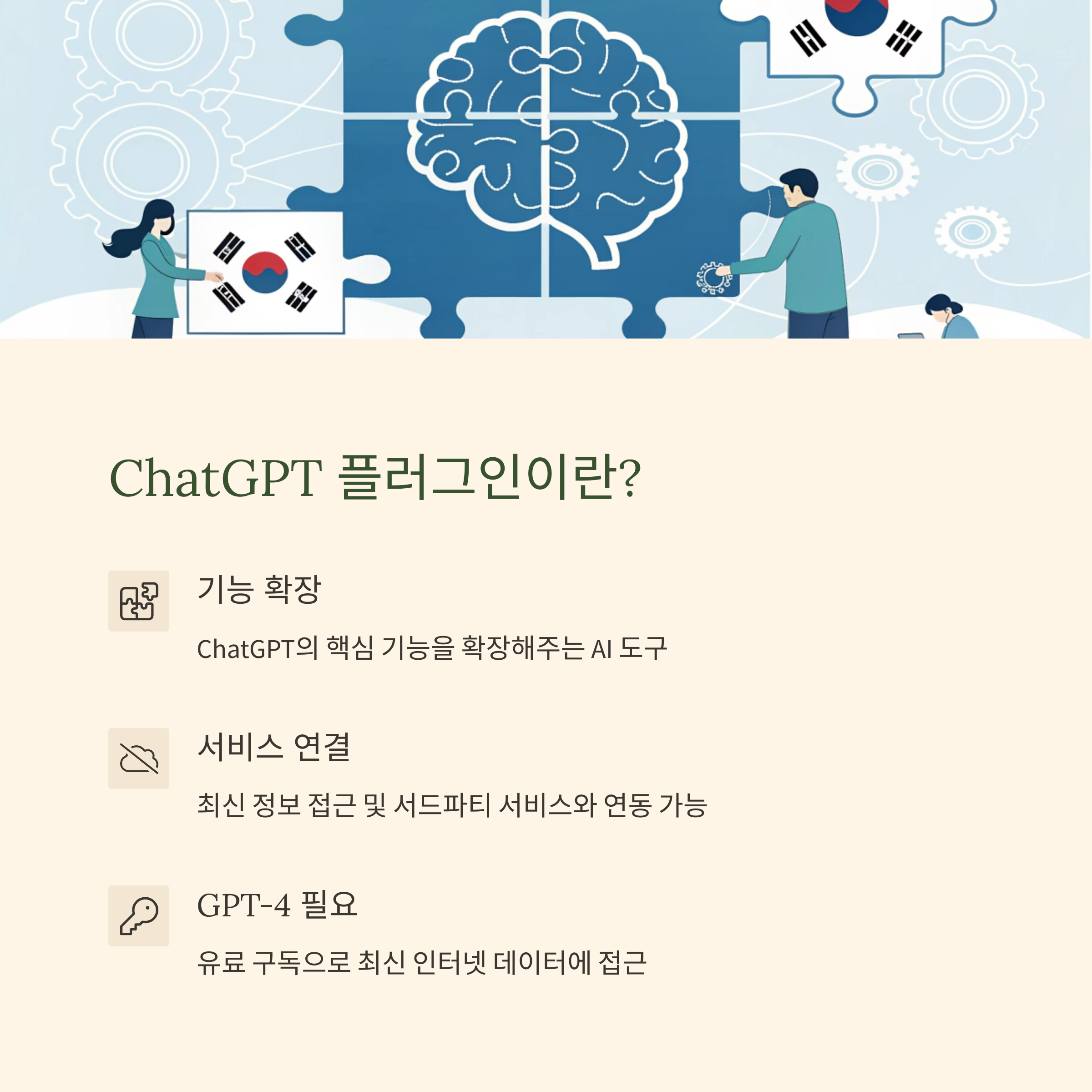 | 플러그인이란? | 챗GPT의 기능을 확장하는 도구입니다. |
