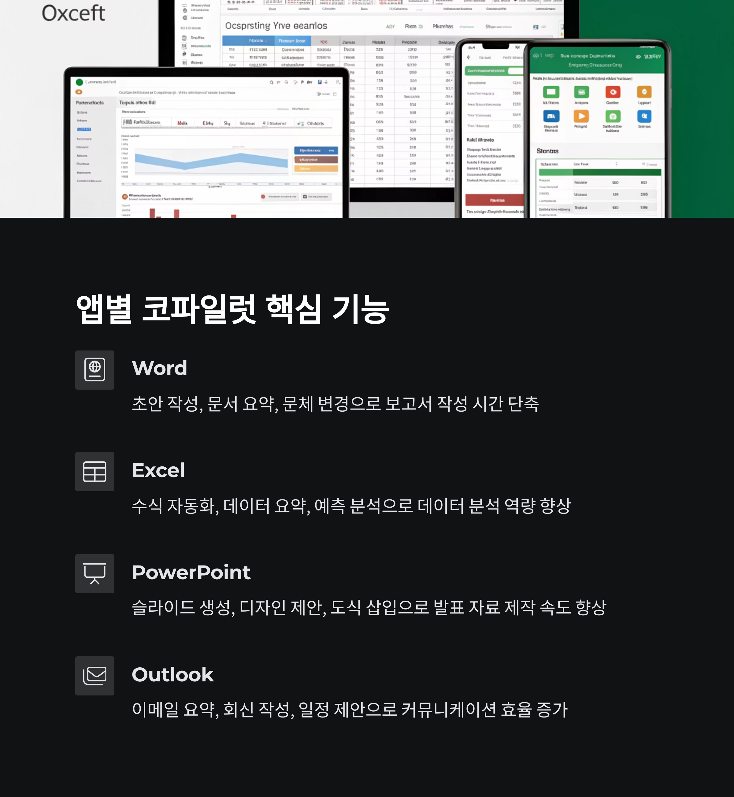 | Outlook | 이메일 요약, 회신 작성, 일정 제안 | 커뮤니케이션 효율 증가 |