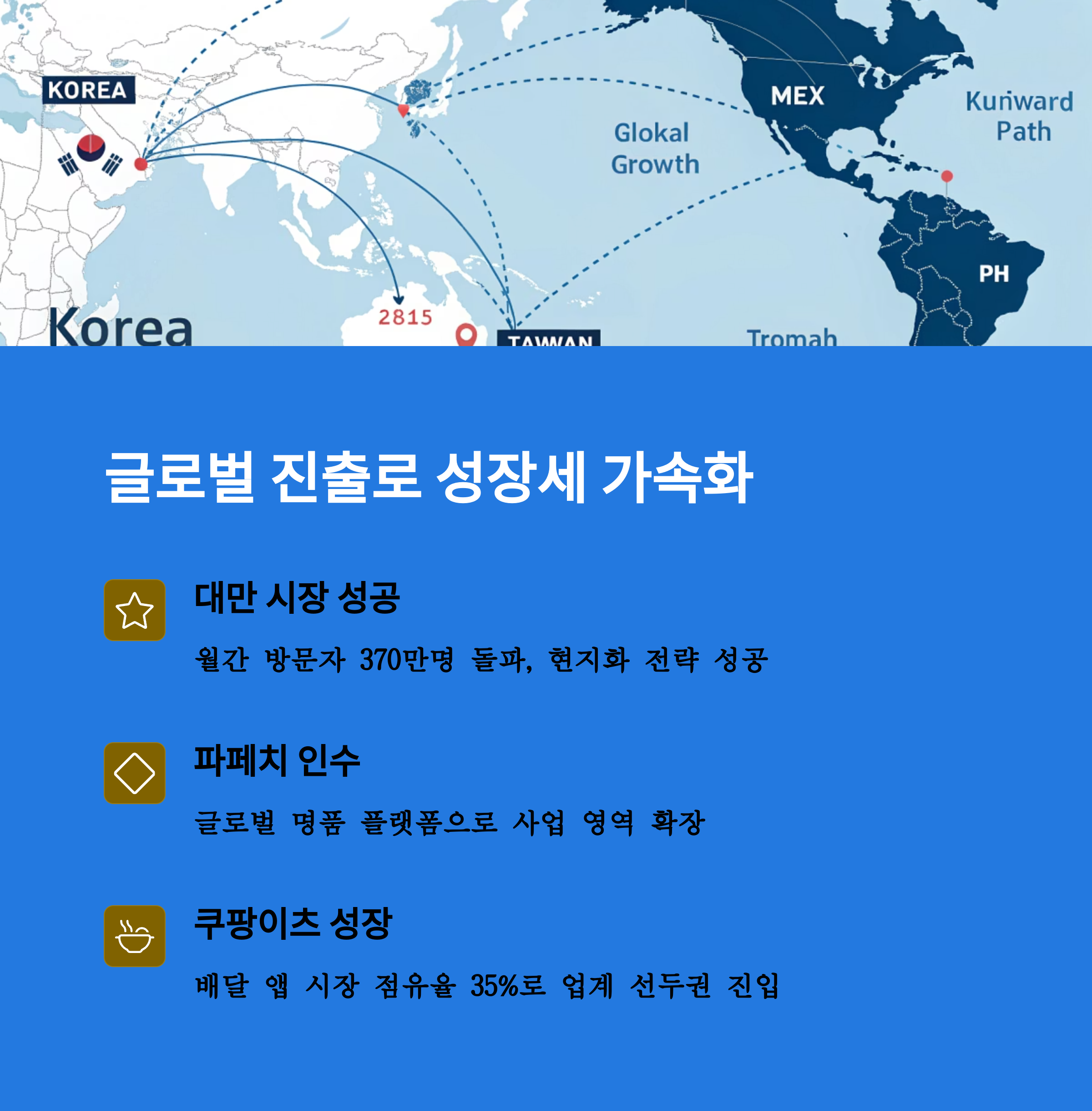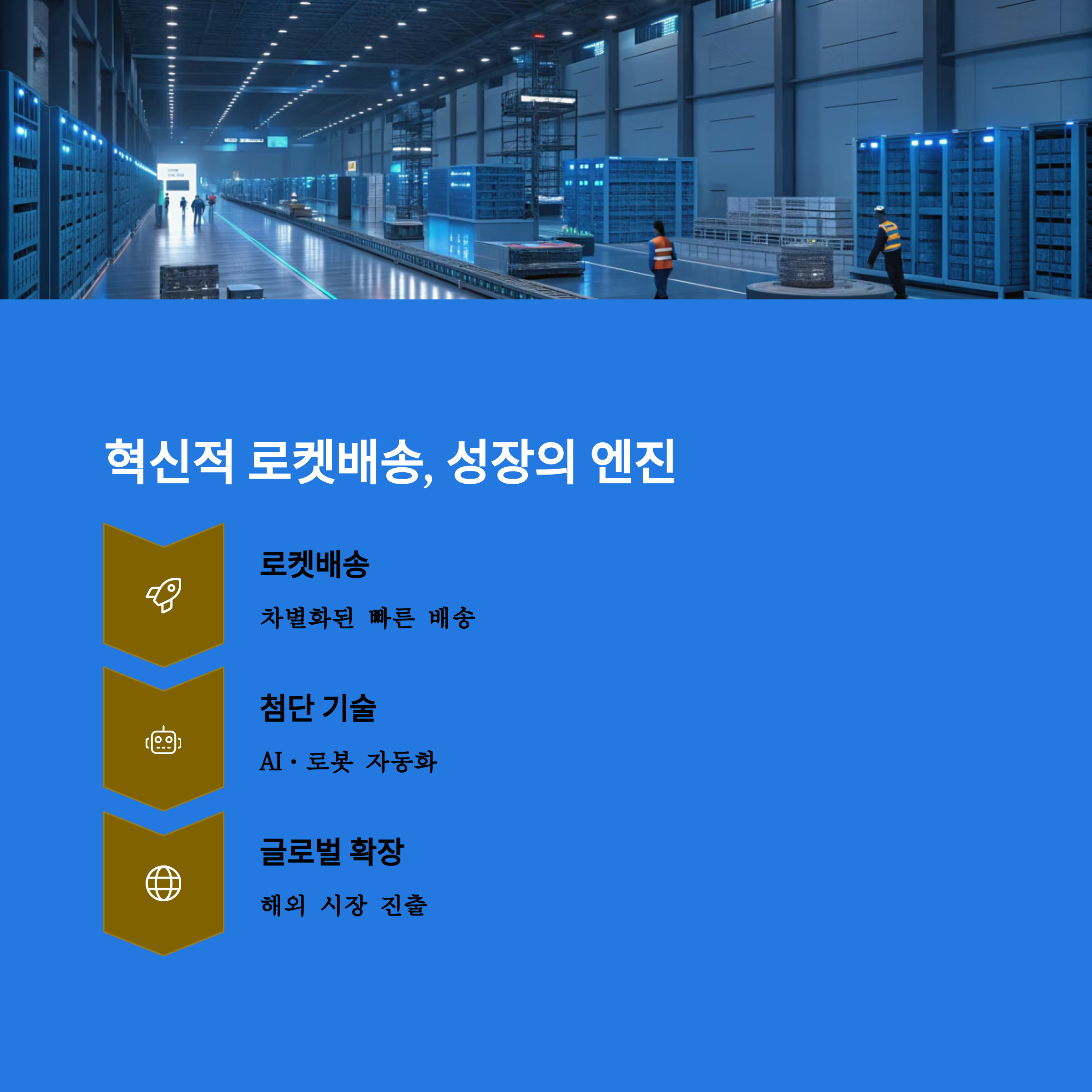 쿠팡의 성장 스토리는 아직 끝나지 않았습니다. 핵심은 ‘퀵커머스(빠른 배송)’와 ‘풀필먼트(자체 물류)’ 시스템인데요. 특히 로켓배송으로 대표되는 초고속 물류는 아시아 시장에서도 경쟁력을 인정받고 있어요. 한국 외에도 대만, 일본 등 글로벌 확장이 본격화되면서 수익 구조도 다각화되고 있습니다. AI 기반 추천 시스템 강화, 쿠팡이츠와 쿠팡페이 등 신사업 부문 성장도 주목해야 할 포인트죠.