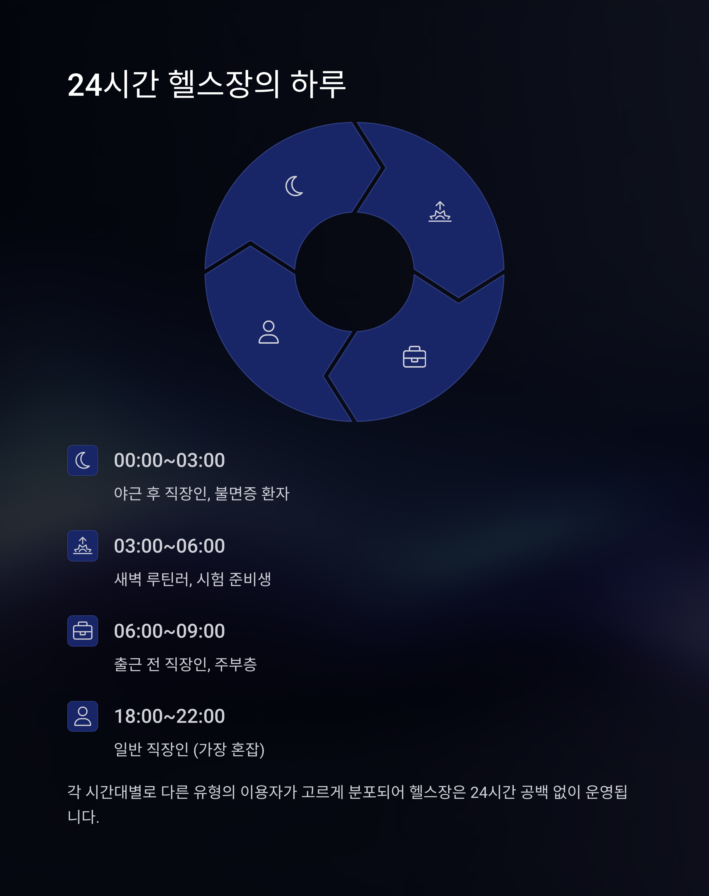 타임라인: 24시간 헬스클럽의 하루