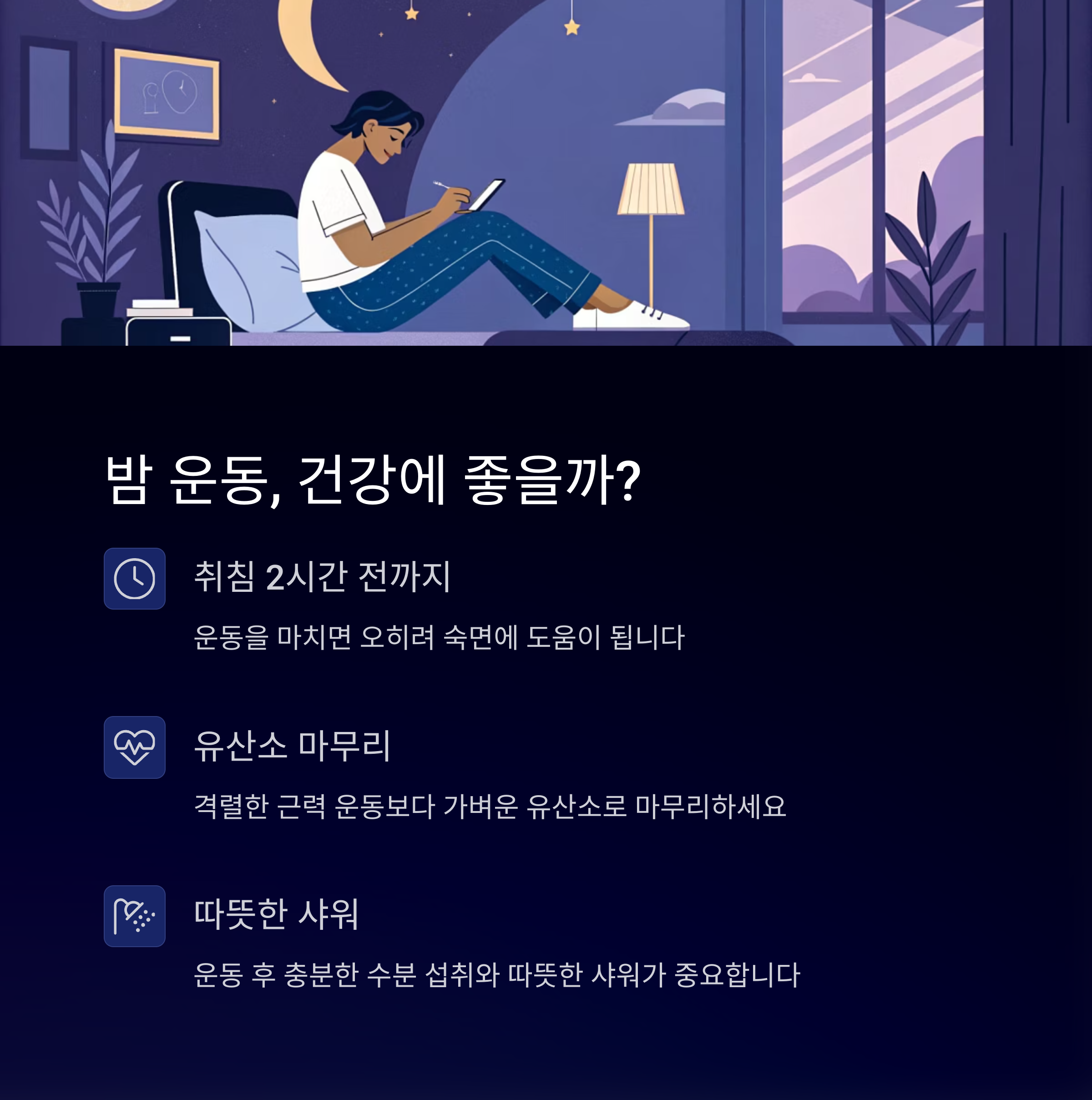 - 집중도는 더 높아지는 심야 운동
