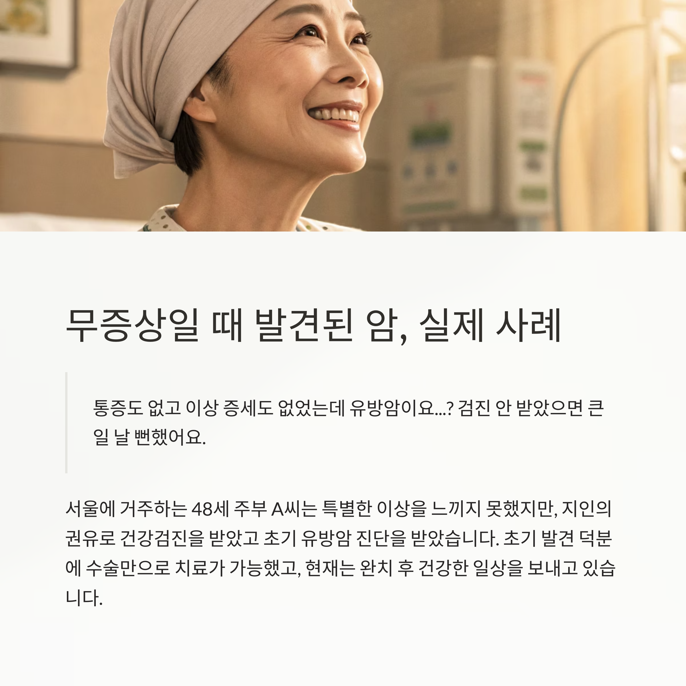 3. "무증상일 때 발견되는 암이 더 위험하다" - 실제 사례