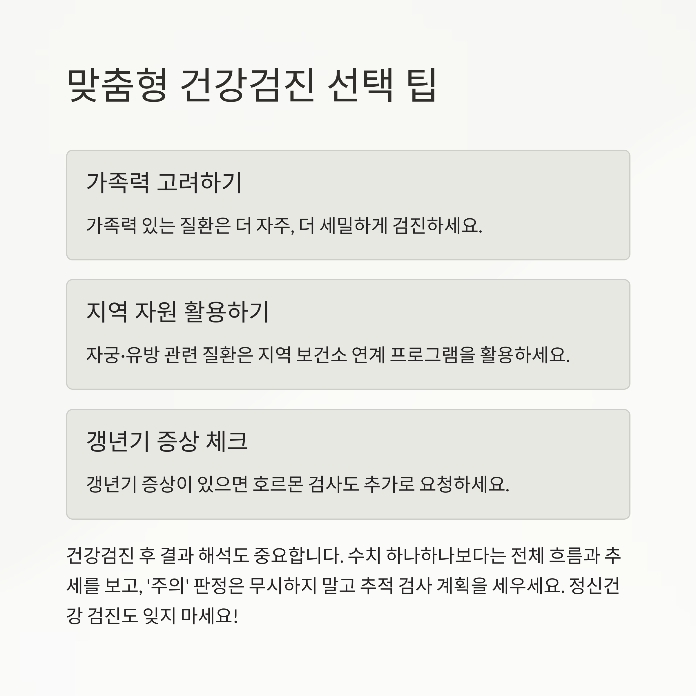 6. '내 건강은 내가 지킨다' - 맞춤형 검진 선택 팁