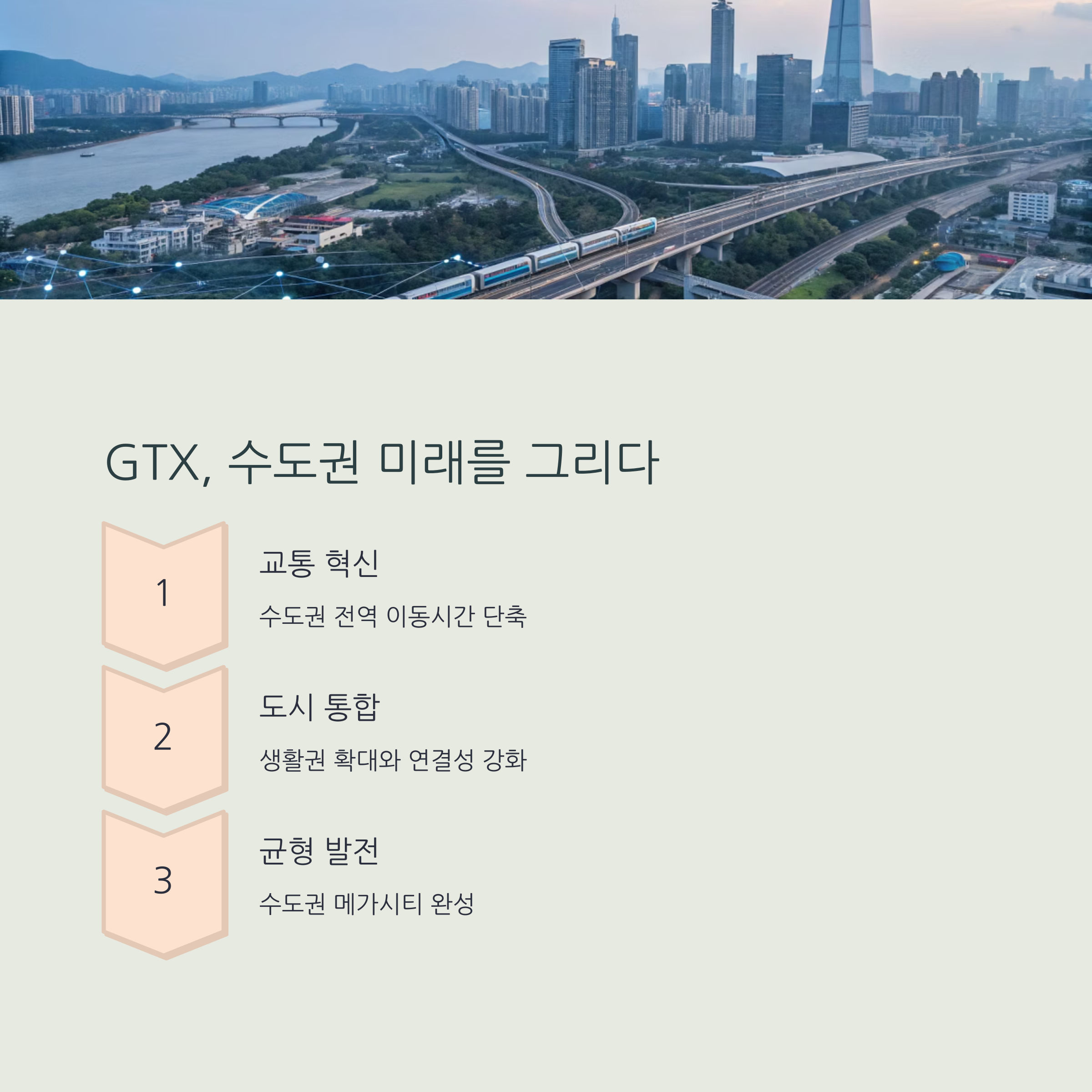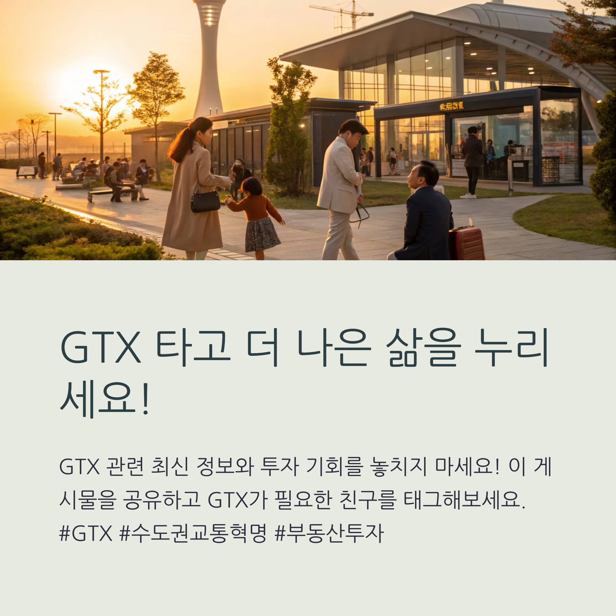 GTX는 단순한 교통 인프라를 넘어 수도권 거주자의 삶을 전면적으로 재편하는 도구입니다. 출퇴근 시간의 단축은 물론이고, 그에 따른 일상 속 여유와 지역 발전이라는 파급력까지 체감할 수 있는 시대가 열리고 있습니다. 물론 이에 따른 가격 상승, 인프라 부족, 수요 쏠림 등도 고려해야 합니다. 하지만 준비된 사람에게 GTX는 기회와 가치 창출의 통로가 될 수 있습니다. 앞으로 더 많은 지역이 연결되며 우리는 더욱 빠르고 편리한 삶을 누릴 수 있을 것입니다.