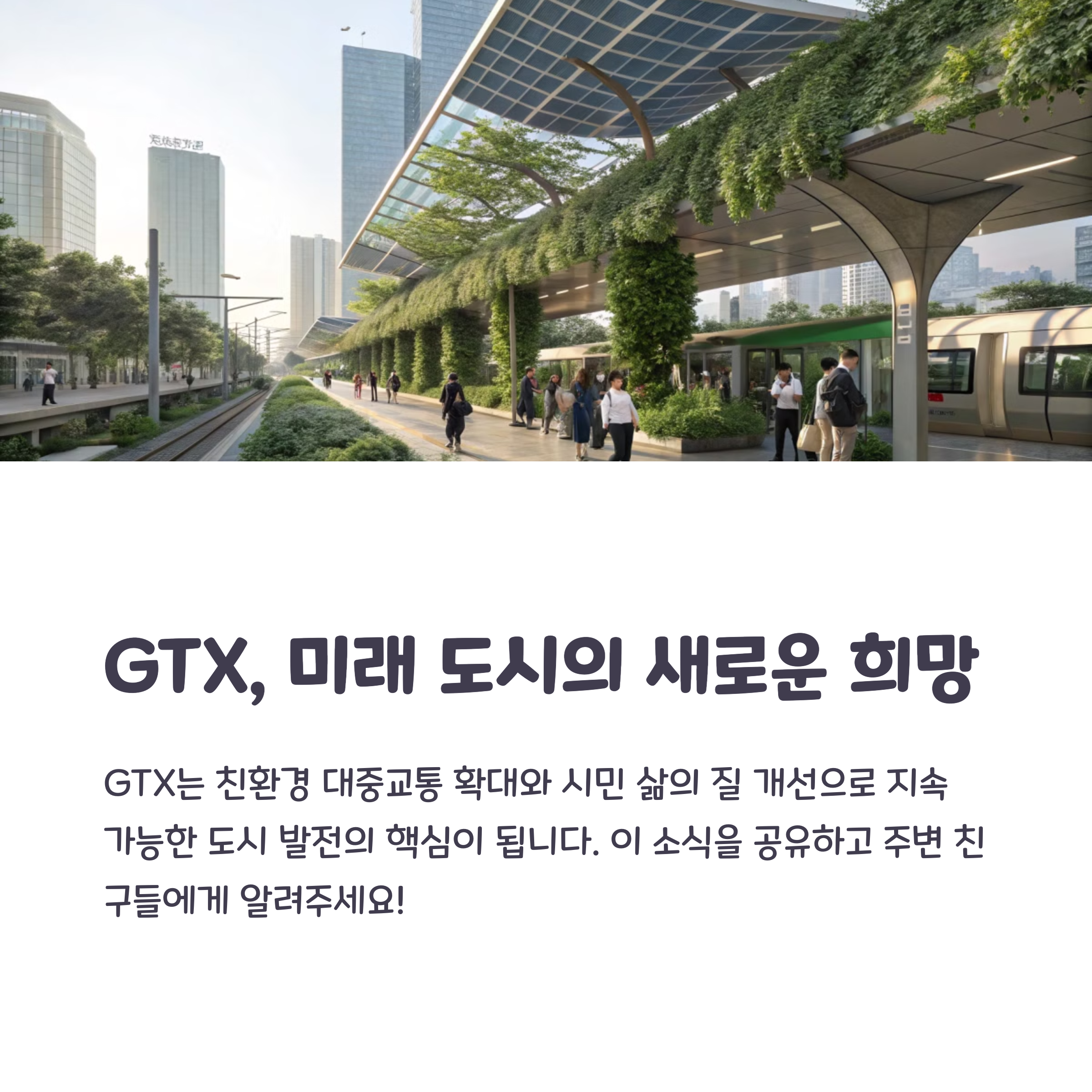 GTX는 단순한 교통수단이 아니라 지역 간 균형 발전, 부동산 가치 변화, 그리고 직장 선택의 폭까지 바꾸는 도시 구조의 혁신으로 평가됩니다. 앞으로의 생활권과 주거 트렌드는 GTX 노선을 중심으로 재편될 가능성이 높으며, 출퇴근 시간의 혁신은 우리의 일상 전반에 큰 영향을 미칠 것입니다.