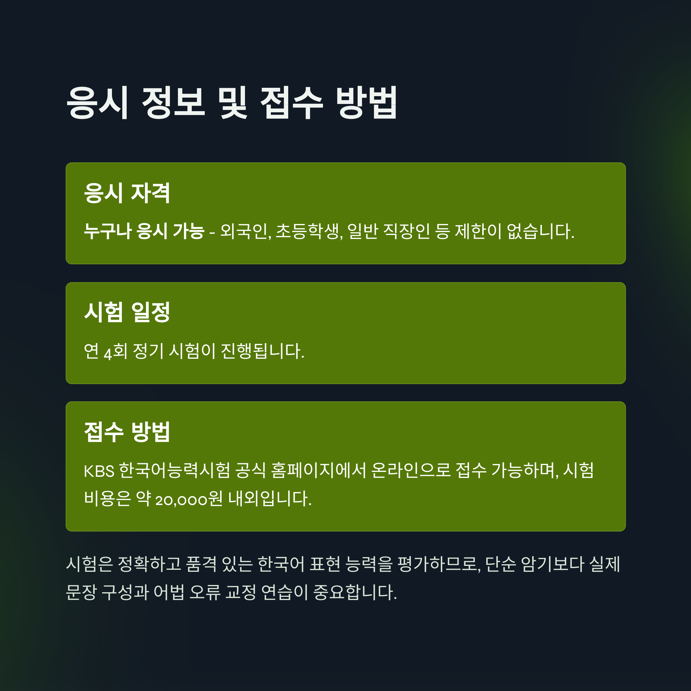 접수는 KBS 한국어능력시험 공식 홈페이지에서 온라인으로 가능하며,