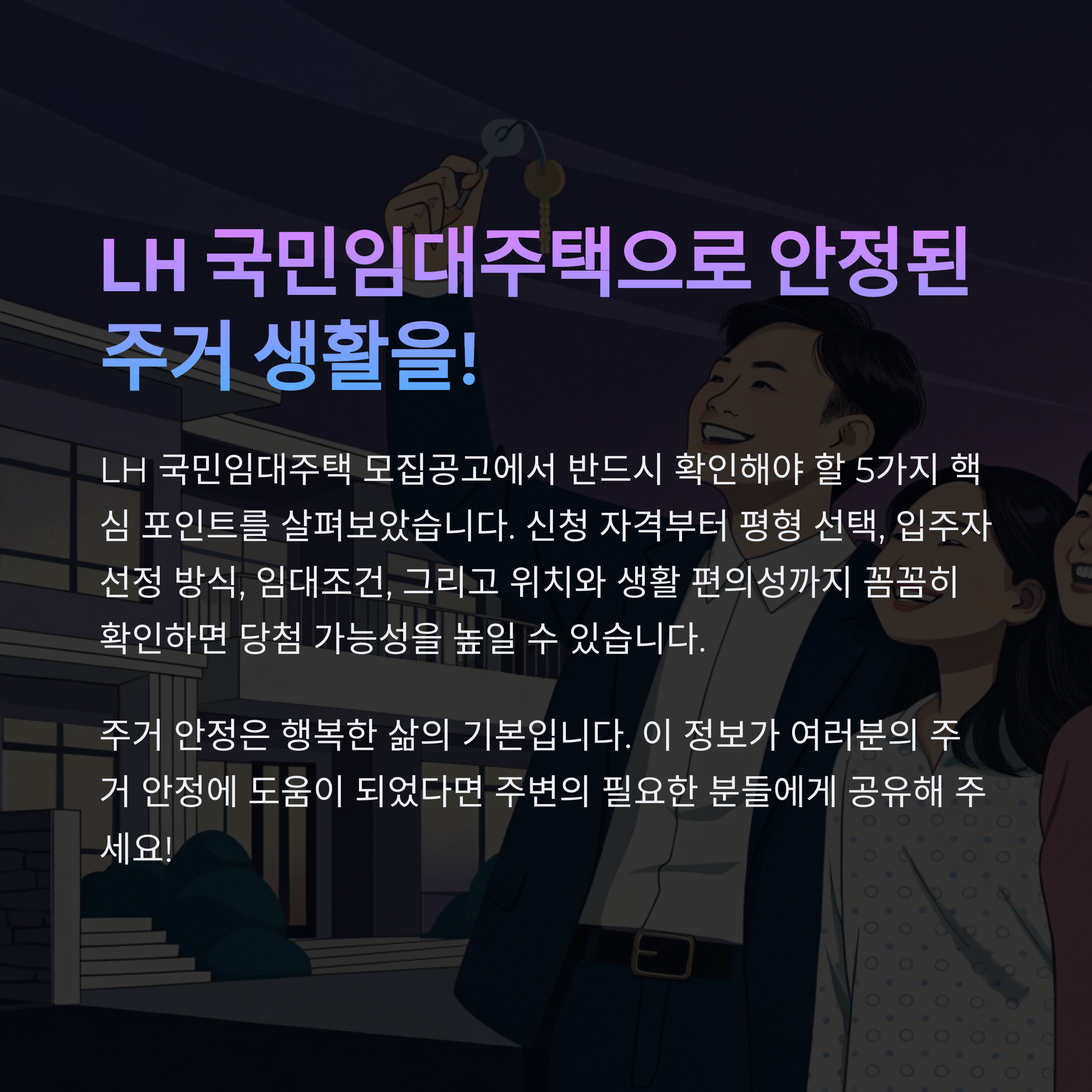 LH 국민임대주택은 저소득층의 주거 안정을 위해 정부가 공급하는 임대주택입니다.