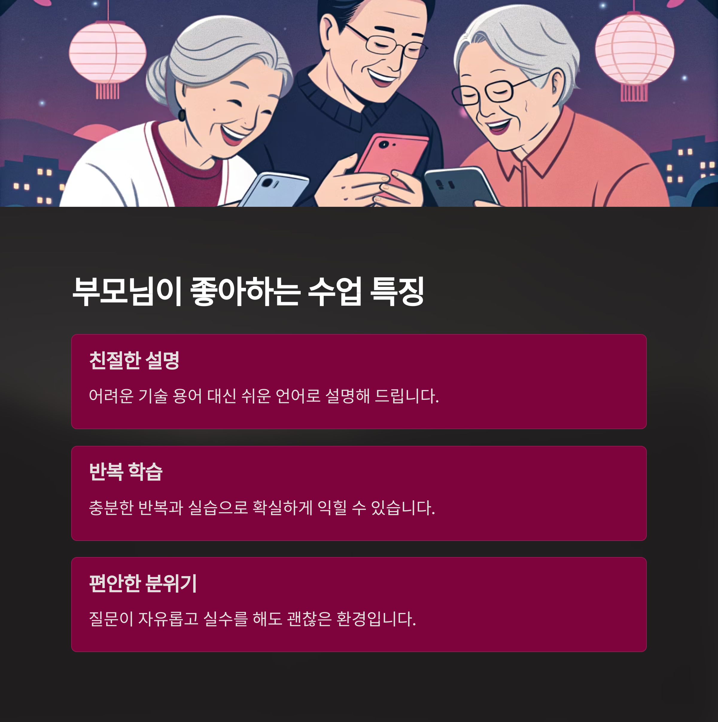 실제로 강의를 수강한 부모님들은 대부분 만족감을 표현한다. 강사의 친절한 설명, 반복 학습 중심의 수업 구조, 쉬운 용어 사용이 가장 큰 장점으로 꼽힌다. 어려운 기술 용어보다는 눈에 보이는 화면을 중심으로, 손으로 따라 할 수 있는 수업 방식이 특히 호응을 얻고 있다.